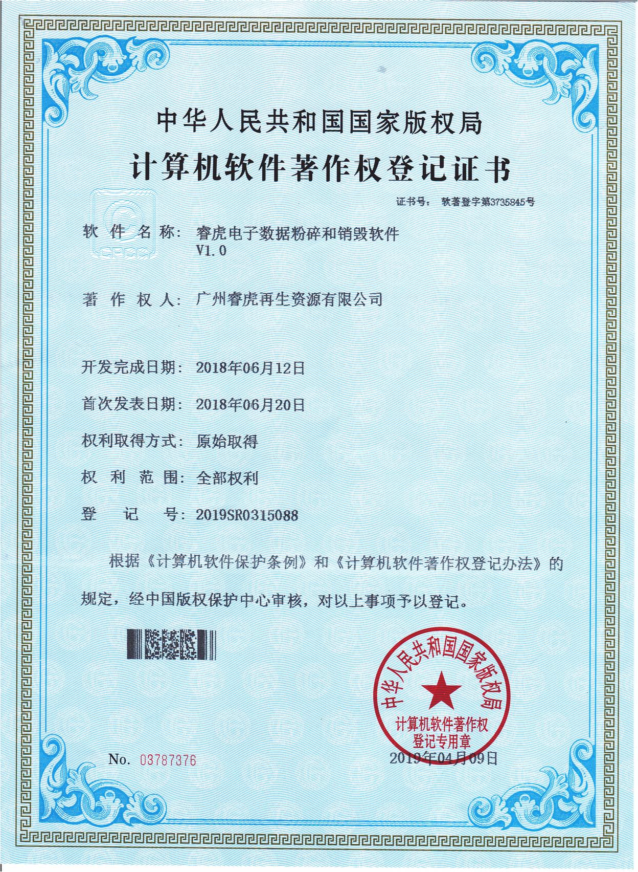 數(shù)據(jù)粉碎軟件著作權